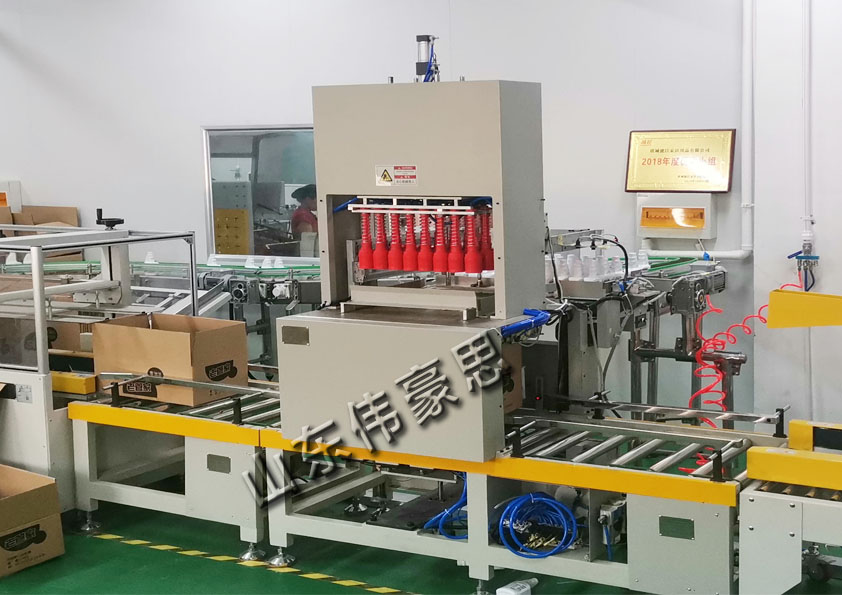 在自動包裝流水線中,全自動裝箱機是整線系統(tǒng)運行的核心,包裝機械雖不是產(chǎn)品直接生產(chǎn)機械,但它卻是實現(xiàn)生產(chǎn)自動化所需的設(shè)備。裝箱機用于完成運輸包裝,它將包裝成品按一定排列方式和定量裝入箱中,并把箱的開口部分閉合或封固。它有容器成形、計量、裝入、封口等功能,山東偉豪思生產(chǎn)的裝箱機整機運行平穩(wěn)可靠,包裝效果牢固美觀配置高,設(shè)備操作簡單,易于保養(yǎng)維護。