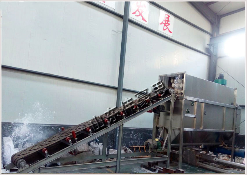 石英砂自動(dòng)拆包機(jī)使用過(guò)程:人工或拆垛機(jī)器人將標(biāo)袋放到皮帶機(jī)開(kāi)始上料;袋裝物料經(jīng)由電動(dòng)滾筒引進(jìn)入自動(dòng)拆包機(jī)內(nèi);標(biāo)袋在自動(dòng)拆包機(jī)內(nèi),經(jīng)過(guò)割刀,滾筒篩,螺旋輸送機(jī),廢袋輸送機(jī)作用后,物料由螺旋輸送機(jī)輸送出來(lái),廢袋從廢袋輸送機(jī)輸出。自動(dòng)化程度高;實(shí)現(xiàn)上料、破袋、脫袋一體化,節(jié)省人工,從而節(jié)約了成本;密閉的機(jī)箱和內(nèi)置除塵裝置可以有效避免粉塵污染,從而改善工作環(huán)境。