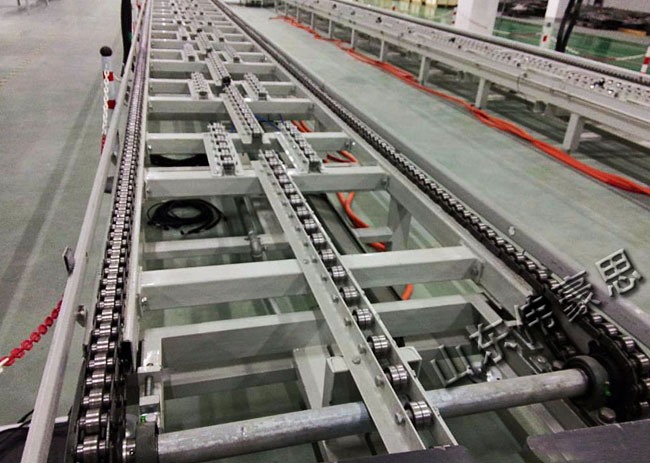1. 鏈式流水線是以鏈條作為牽引和承載體輸送物料,鏈條可以采用普通的套筒滾子輸送鏈,也可采用其它各種特種鏈條;